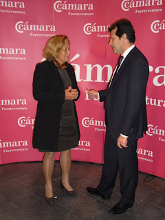 Mª Jesús de Vera Carrión, tesorera de la Cámara de Comercio, Industria y Navegación de Fuerteventura, presentó en el día de ayer en Puerto del Rosario, la conferencia impartida por el economista Orlando Luján, en el marco del Primer Encuentro de Asesores y Especialistas Empresariales que forma parte de la campaña "Arrímate al Triunfo", al que acudieron medio centenar de profesionales relacionados con la asesoría y gestión empresarial de la isla.