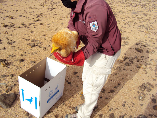 En Fuerteventura la colaboración ciudadana ha permitido la localización de un ejemplar accidentado de guirre (Neophron percnopterus majorensis) en la zona del barranco Río Cabras, en el municipio de Puerto del Rosario. Gracias a un aviso ciudadano realizado este martes, día 6 de abril, los agentes de Medio Ambiente del Cabildo de Fuerteventura procedieron a recoger al animal, que presentaba politraumatismo y fractura de fémur.