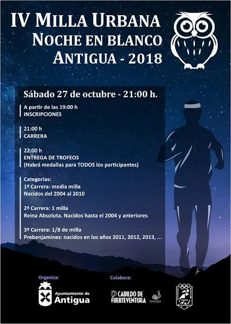 programa de actos de La Noche en Blanco de Antigua, una propuesta de ocio, musical y