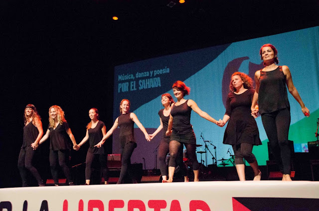 afincada en la isla.La segunda mitad del evento comenzaba con una coreografía inspirada en el poema de Marivel Lacave ‘Campos de Tinduf’ que representaron las alumnas de contemporánea de Espaciodanza Fuerteventura. La Familia Flotante, parte musical del proyecto 'La vuelta al mundo en 80 guitarras', cosechó sonoros aplausos con su muestra de flamenco y jazz.