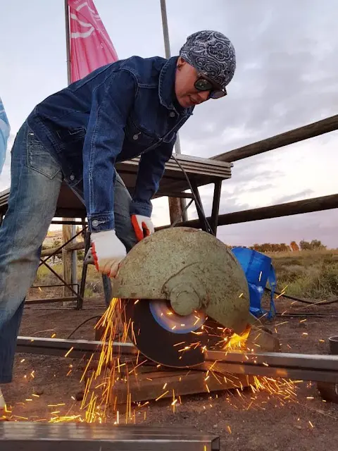 trabajan ya en sus esculturas de piedra y metal en la Avenida del Centenario de