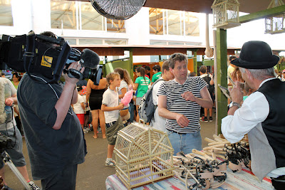 Durante la jornada matutina, una veintena de jugadores del torneo de voley playa que se celebra este fin de semana en Caleta de Fuste visitaron los puestos de la Feria Insular de Artesanía. También se desplazó hasta Antigua el presentador de la BBC Mike Bushell, acompañado de un cámara de la televisión británica, que realizará un programa especial tanto de la muestra de referencia regional como de la competición deportiva, aprovechando su estancia en el municipio. La iniciativa, impulsada por la Concejalía de Turismo en coordinación con el área de Cultura y otros departamentos municipales, permitirá promocionar Antigua en el mercado británico.