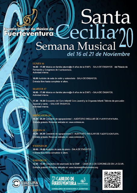 La Escuela Insular de Música de Fuerteventura celebra la próxima semana los conciertos en homenaje a Santa Cecilia, patrona de la música y de los músicos, con una extensa programación de conciertos a cargo del alumnado de las diferentes especialidades, que mostrará al público el trabajo realizado desde el comienzo de las clases.