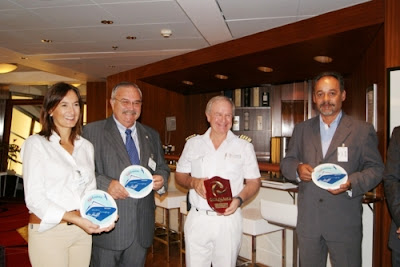 La consejera de Turismo del Cabildo insular, Águeda Montelongo, entregaba al capitán del buque la metopa conmemorativa. Para Montelongo la llegada de este nuevo barco a Fuerteventura significa “una prueba más del compromiso del Patronato de Turismo por la apuesta de turismo de crucero que está registrando muy buenos datos en la Isla”.