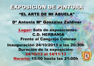 tendrá lugar en la Sala de Exposiciones del C.D. Herbania, junto al Cangrejo