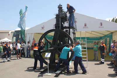 El Cabildo de Fuerteventura, desde la Consejería de Industria y Energía, se ha ocupado de impulsar la recuperación de este ingenio para destinarlo a su exposición. Un numeroso público se congregó hoy para contemplar el artefacto, para cuya puesta en funcionamiento hubo que utilizar varias bombonas de aire comprimido, necesarias para dotar de inercia inicial al motor.