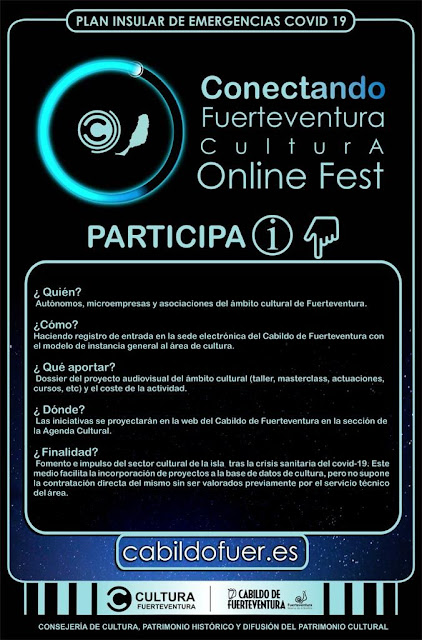 Conectando Fuerteventura Online Fest es un proyecto cultural que actúa como canal de recolección de las distintas propuestas del sector cultural de la isla en formato audiovisual, planteadas en las semanas de confinamiento, para salvaguardar la actividad cultural durante y después del COVID-19.