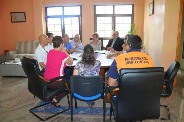 esta mañana la reunión con la presencia de la alcaldesa de Antigua, Genara Ruiz;
