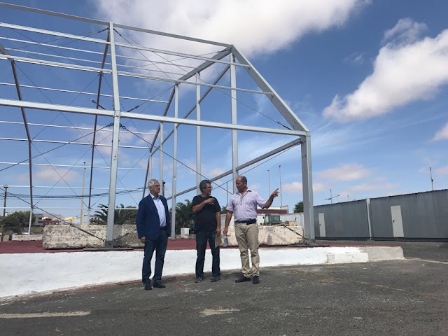 • Una vez concluido el acto de presentación del programa,  el Alcalde y Concejal de Festejos se trasladaban al Recinto Ferial para comprobar la marcha de los trabajos de acondicionamiento de este espacio e instalación de la Carpa que acogerá los eventos más participativos.