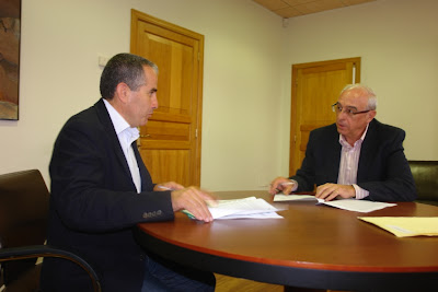 El presidente del Cabildo de Fuerteventura, Mario Cabrera, y el representante en Canarias de Obrascon Huarte Lain SA, Carlos Suárez, firmaron esta mañana el contrato de elaboración del proyecto y ejecución de la fase final del Edificio de Formación y Congresos de Fuerteventura.