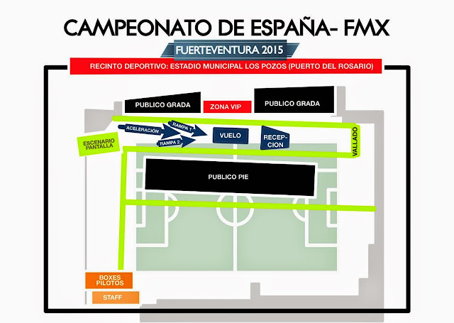 El estadio Los Pozos de Puerto del Rosario se convertirá en un gran escenario con una distribución adaptada a este tipo de espectáculos. Así, el público tendrá una visión completa de los trucos que los pilotos realizarán en el aire durante la prueba garantizando la visibilidad.