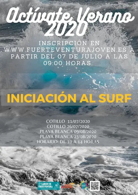 Todas las actividades de Actívate Verano 2020 son gratuitas y están dirigidas a jóvenes de entre 14 y 35 años, desarrollándose durante los meses de julio y agosto en las localidades de Cotillo, Puerto del Rosario, Caleta de Fuste, Las Playitas y Morro Jable. Además de iniciación al surf, el programa incluye actividades de iniciación al buceo y de avistamiento de cetáceos.