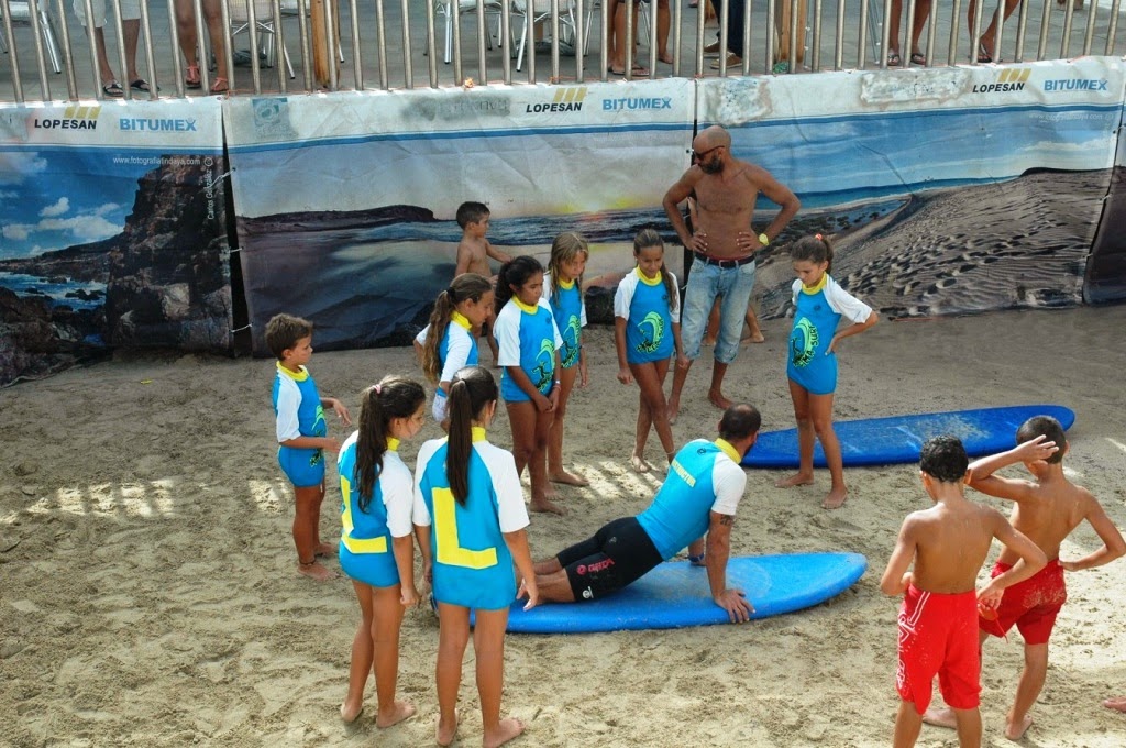 School ofreció clases de iniciación al surf. La cuentacuentos Mon Peraza