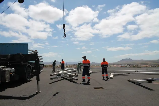 Fuerteventura.- Más de 15 trabajadores de los ayuntamientos de Pájara y Antigua unen fuerzas para el montaje de la estructura de las carpas que acogerán la Feria Insular de Artesanía 2018.