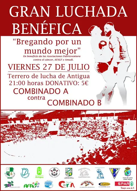 El Ayuntamiento de Antigua colabora en la organización de la Gran Luchada Benéfica Bregando por un mundo mejor, que tiene lugar este viernes 27 de julio en el Terrero de Lucha de Antigua ofreciendo entradas donativos a 5 euros.