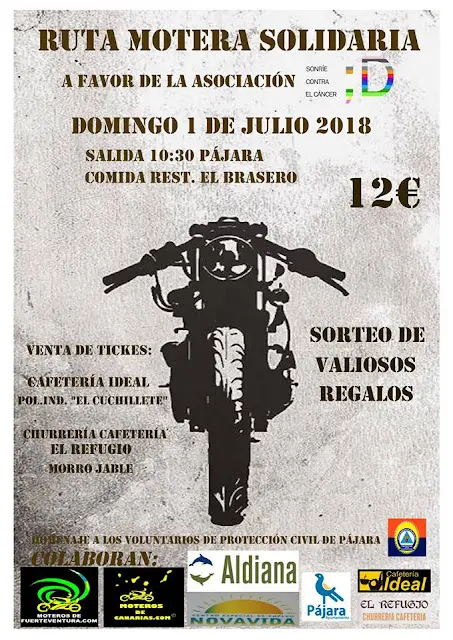 En Fuerteventura la asociación Sonríe contra el Cáncer, con sede en el municipio de Pájara, celebrará una Ruta Motera Solidaria el próximo 1 de julio, un evento benéfico que cuenta con la colaboración del Ayuntamiento de Pájara.