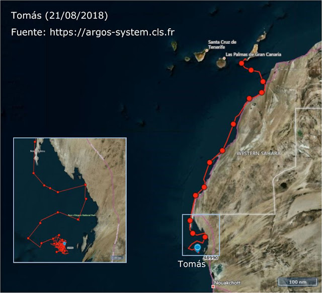 de seguimiento por satélite a varios ejemplares juveniles de esta