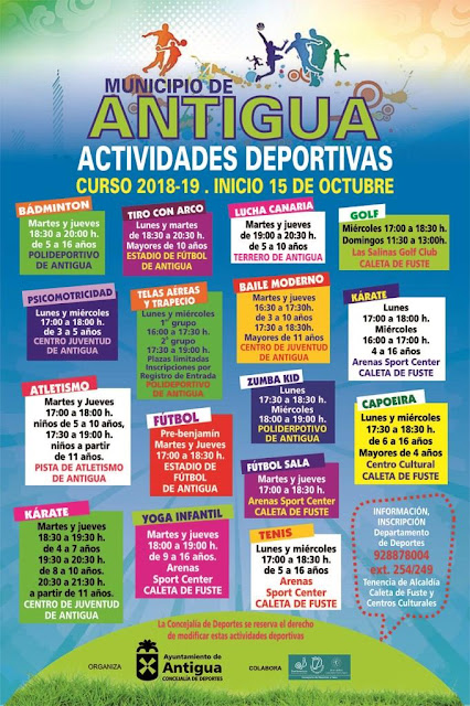 concejalía de Deportes del Ayuntamiento de Antigua que facilita también las
