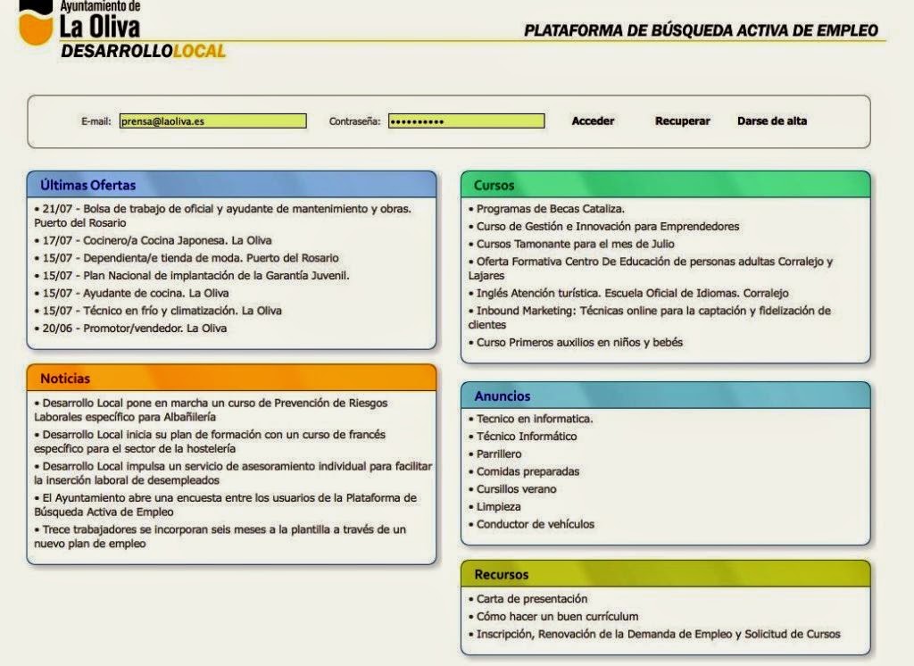 La Oliva, a 21 de julio de 2014. La plataforma de búsqueda activa de empleo (PBE)