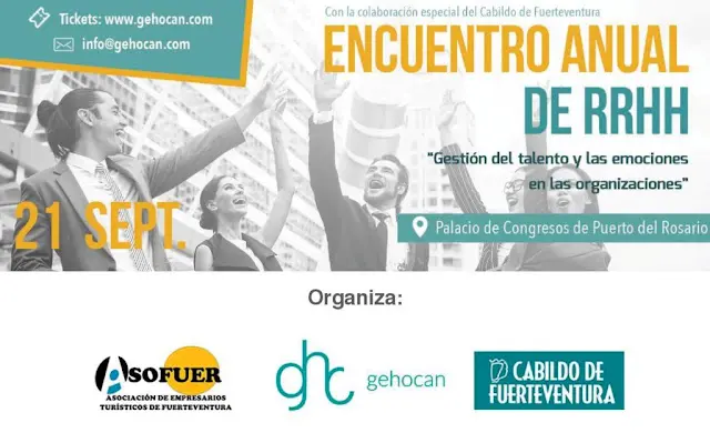 Puerto del Rosario, 31 de julio de 2018.- El Cabildo de Fuerteventura, la patronal turística majorera ASOFUER y Gehocan promueven el IV Encuentro Anual de RRHH de Canarias que se celebrará en el Palacio de Formación y Congresos el próximo 21 de septiembre.