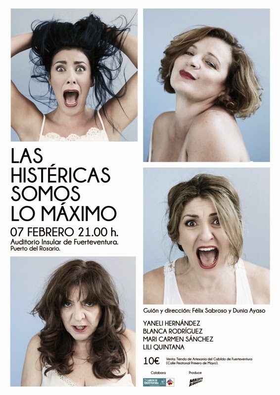 La Agenda de Cultura, que edita la Consejería de Cultura y Patrimonio Histórico del Cabildo de Fuerteventura que dirige Juan Jiménez, incluye para este próximo sábado, 7 de febrero, la obra de teatro 'Las histéricas somos lo máximo', a partir de las 21.00 horas en el Auditorio Insular (las entradas ya están a la venta en La Tienda del Cabildo de Fuerteventura, calle 1º de Mayo).