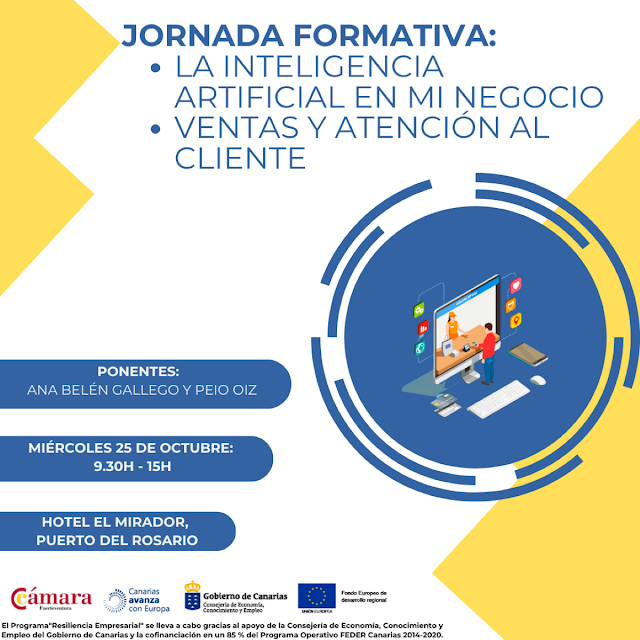 La Cámara de Comercio de Fuerteventura organiza una jornada formativa en la que autónomos y pequeñas empresas descubrirán la utilidad de la inteligencia artificial, además de estrategias de venta y atención al cliente