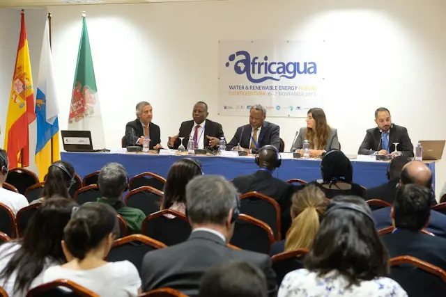 “Resiliencia ante el cambio Climático: agua, energía renovable y planificación territorial” es el lema que promueve la sexta edición de Africagua Canarias con el objetivo de ahondar en los desafíos que se presentan en estos ámbitos y que convierten al continente vecino en un gran mercado de oportunidades. Una nutrida representación de ministros y ministras africanos, acompañados de los máximos representantes de los organismos públicos de sus respectivos países y de buena parte de su tejido empresarial darán a conocer sus proyectos en el encuentro internacional referente de Canarias que tendrá lugar los días 13 y 14 de noviembre en el Palacio de Formación y Congresos de Fuerteventura. Una cita ineludible para debatir sobre agua, energías limpias y Agenda 2030, en la que participan representantes políticos y económicos procedentes de Europa, África y América, y que tiene a Marruecos como país invitado.