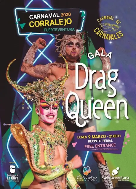 La Oliva, a 9 de marzo de febrero de 2020. Corralejo se prepara para celebrar hoy el Día del Turista dentro del Carnaval de Carnavales de La Oliva 2020, con la celebración a partir de las 21:00 horas de la Gala Drag Queen, que contará con 11 de las mejores reinas de Canarias, incluyendo finalistas y el vencedor en el certamen de Las Palmas de Gran Canaria, Drag Sehtlas.