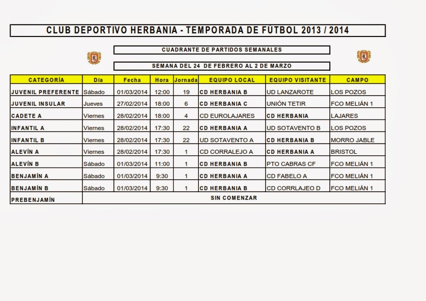 Fuerteventura.- Cuadrante Futbol CD Herbania del 24 de Febrero al 2 de Marzo