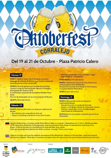 La Oliva,Fuerteventura a 19 de octubre de 2018. El Ayuntamiento de La Oliva, desde las concejalías de Turismo y Comercio, colabora en la organización del programa del Oktoberfest en Corralejo, que tendrá lugar en la Plaza Patricio Calero desde hoy viernes 19 de octubre hasta el domingo día 21, y con acciones paralelas en las zonas comerciales.