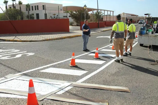 remarcando y mejorando la señalización horizontal de tráfico, como pasos de peatones, stops, líneas