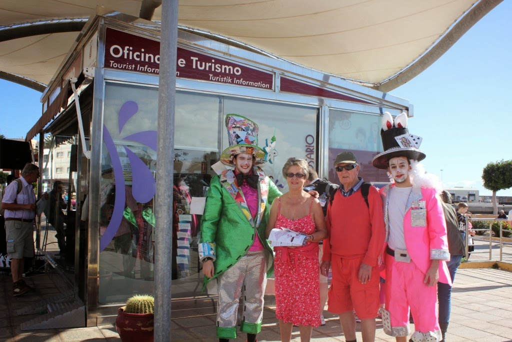 ambiente carnavalero con la presencia de dos murgueros disfrazados para la