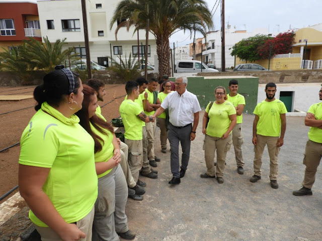 En Fuerteventura durante la mañana del jueves, 06 de septiembre, el Alcalde de Puerto del Rosario Nicolás Gutiérrez y la concejala, Rita Darias, hacían una visita a los alumnos/as del PFAE “La Enredadera” que han realizado