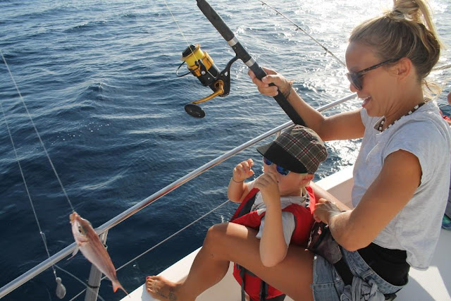 de media hora, aprendiendo a echar la caña y recoger carrete cuando un pez ha