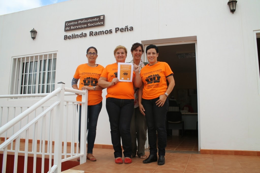 La concejala de Servicios Sociales del Ayuntamiento de Antigua, América Soto, y el personal técnico del área se han concentrado en la mañana de este miércoles a las puertas del ‘Centro Polivalente de Servicios Sociales Belinda Ramos Peña’, en apoyo a la petición del Colegio Oficial de Diplomados en Trabajo Social y AA.SS. de Las Palmas, que exige que se pongan los medios necesarios para que la nueva Ley que regulará la Prestación Canaria de Inserción (PCI) cumpla de forma eficiente y eficaz su finalidad.
