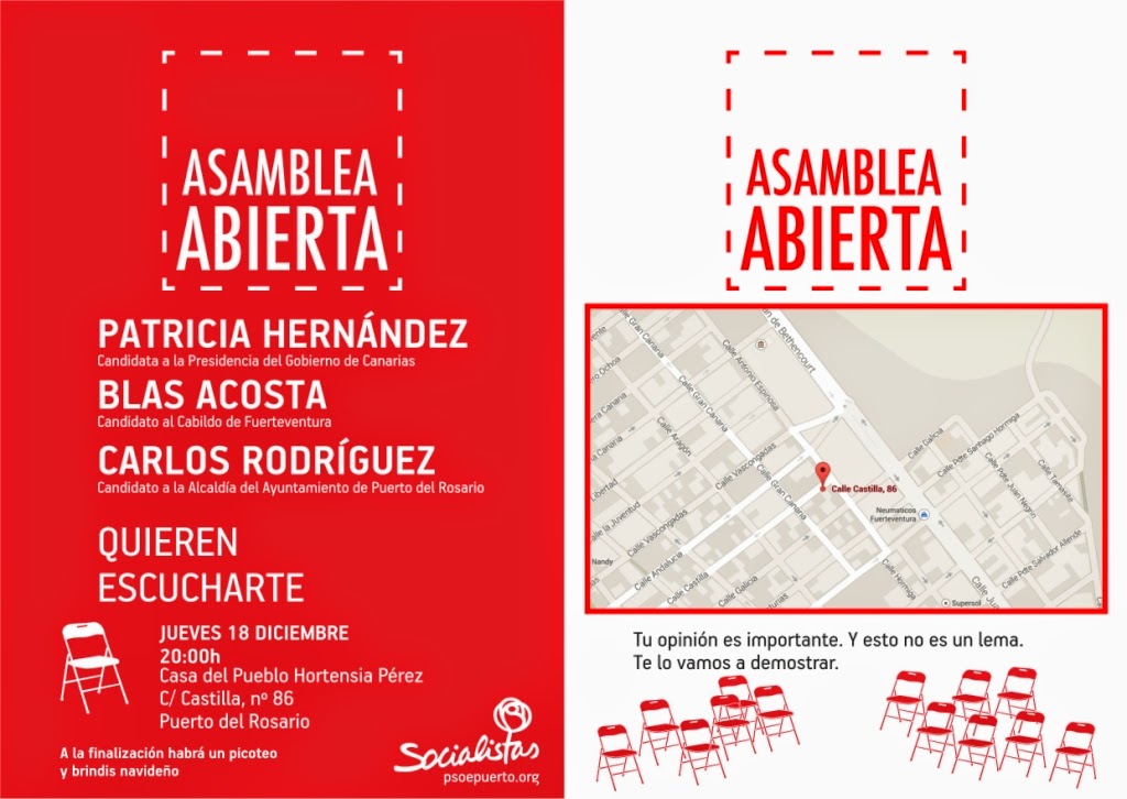 Al acto asistirán Patricia Hernández, candidata a la presidencia del Gobierno de Canarias, Blas Acosta, candidato socialista al Cabildo Insular y su homologo en el Ayuntamiento de Puerto del Rosario, Carlos Rodríguez.
