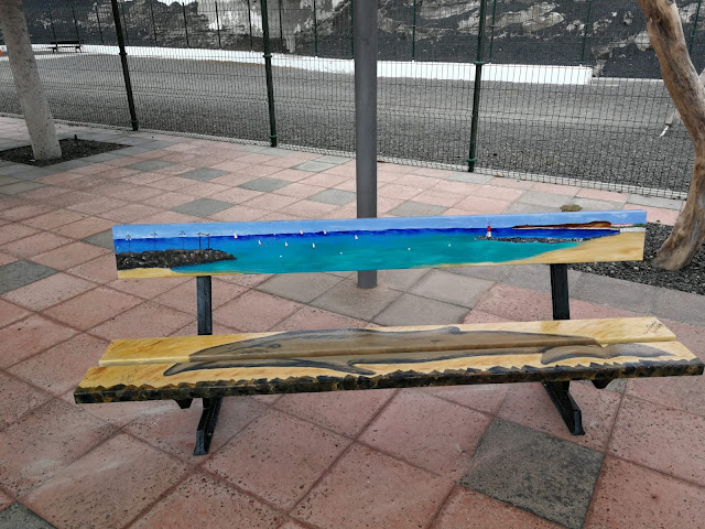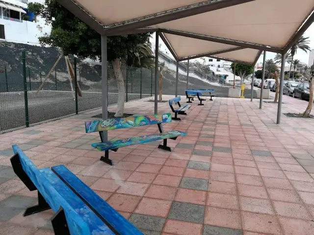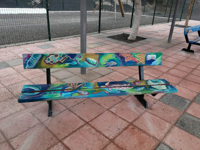 en el pintado del mobiliario urbano del entorno a la playa Los Pozos