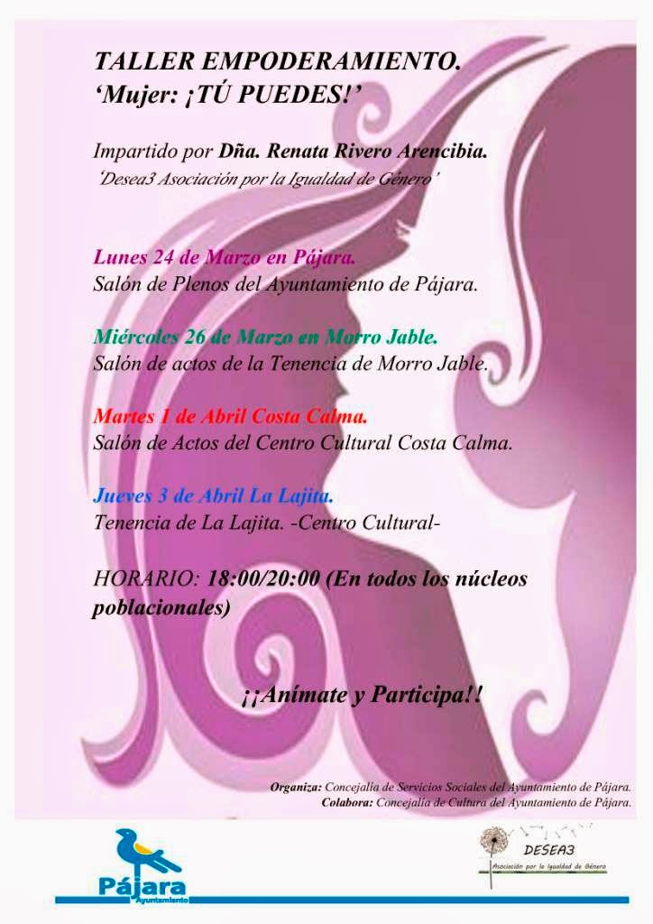 empoderamiento’ ‘Mujer: ¡Tú puedes!’. Este taller será impartido por Renata