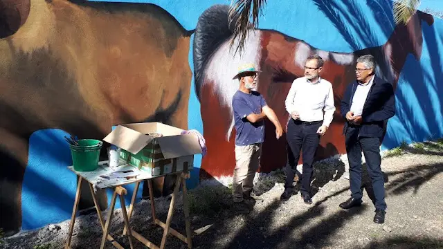 un mural dedicado a la cabra majorera que realiza sobre una pared situada en la