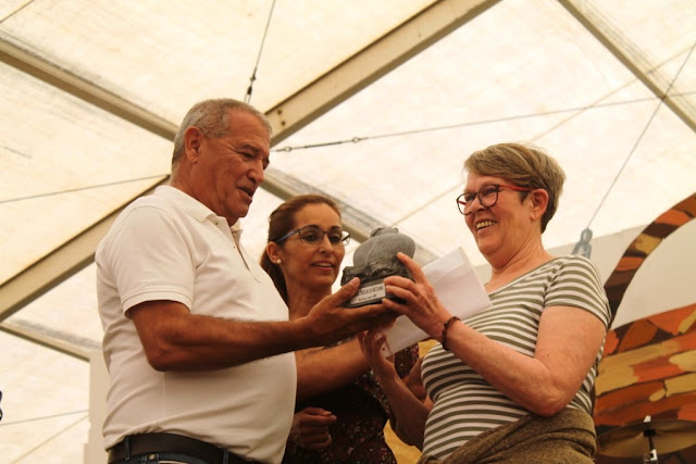 Es grato ofrecer este Premio Insular de Artesanía 2017, señala el concejal de Cultura del Ayuntamiento de Antigua, Mario Jordán, presente en el acto, a una artesana que siendo de origen alemán, ha hecho de Fuerteventura su patria chica, aprendiendo y respetando el noble oficio de la alfarería tradicional, además de aprender y enseñar la decoración de telas con tintes naturales, y elaborar también trabajos en papel cartón.