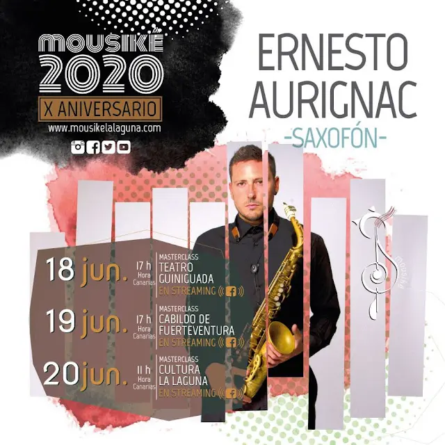 La consejería de Cultura del Cabildo de Fuerteventura y Mousikê continúan haciendo frente a las limitaciones impuestas por el Covid-19 con tres masterclass a cargo del poliédrico Ernesto Aurignac, que recientemente estrenó #themusicBOOM, un montaje de vídeo-audio para el Covid-19 y por la cultura.