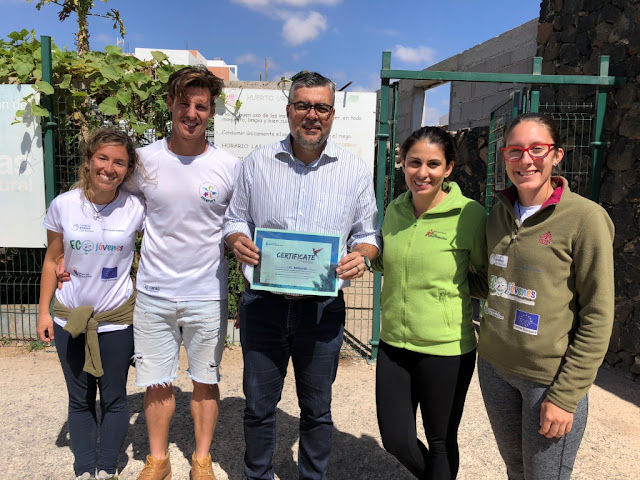 envases de yogur reutilizados como macetas. El concejal de Medio Ambiente del Ayuntamiento de Puerto del Rosario, Alejo