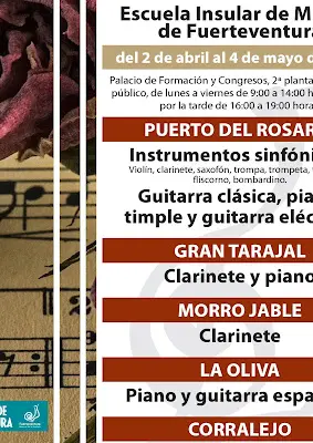 preinscripciones se harán para clarinete y piano en Gran Tarajal,