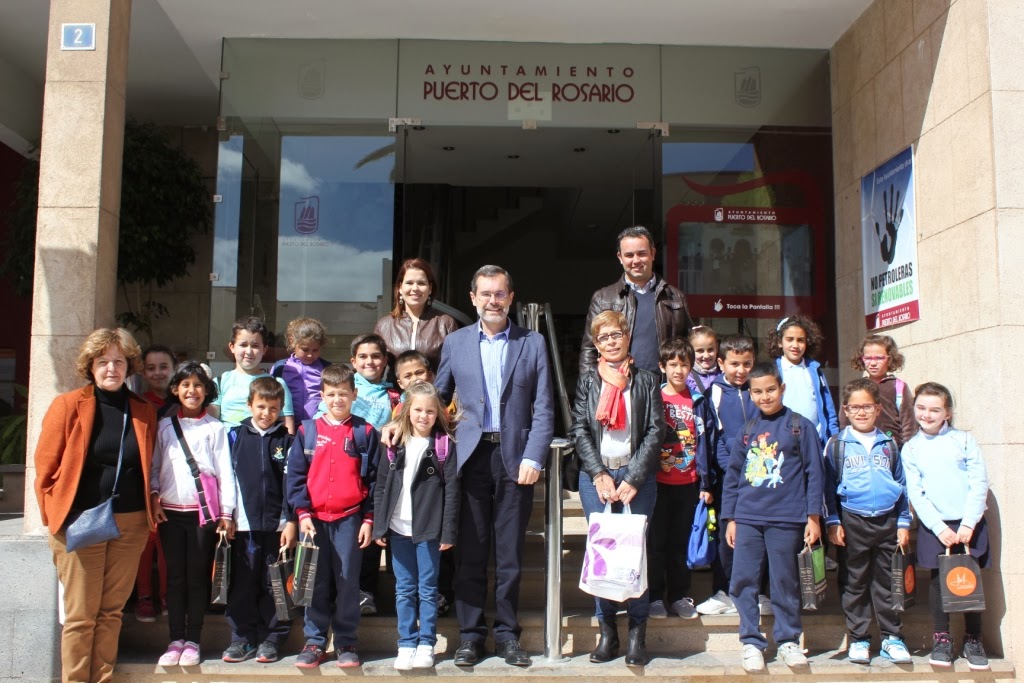 de Puerto del Rosario, Marcial Morales, junto a los concejales Rita Darias e Iván Cerdeña, recibían en el salón de plenos a un