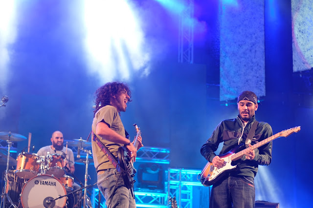 Compuesto por veteranos músicos de la escena rockera de Gran Tarajal, el grupo Kruger abrió la segunda noche del FEM a base de temazos, auténticos referentes del rock y el punk patrio, versiones incluso mejoradas de algunas de las canciones más coreadas de los últimos 30 años, como Jesucristo García, de Extremoduro, Txus de La Polla Records (algo bíblicos ayer Kruger) o Revuelta en el frenopático, de Kortatu. Porretas o Barricada también estuvieron presentes en su repertorio, lo que provocó una especie de pogo en la arena bastante sui géneris. Bravo por ellos.The Sordos tomaron el relevo con su rock algo más pulido y refinado, con toques de blues, funk y rock nacional argentino, influencia que arrastra lógicamente su estupendo cantante, Agustín Lapertosa (también bajista y voz), de procedencia argentina. Excelente su guitarra solista, Alejando Manzano, que ofreció todo un repertorio de solos haciendo gala de su virtuosismo. Contundentes a pesar de ser un trío, algo que está en el haber de Carlos Rubio (batería y coros), contaron con el apoyo de un buen número de seguidores. Excelente futuro por delante de esta banda, con un directo rocoso, bien trabajado, transparente.