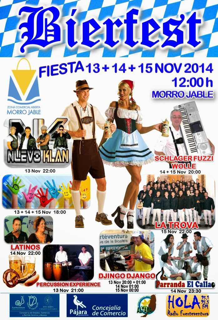 El Ayuntamiento de Pájara, a través de la Concejalía de Comercio dirigida por Faustino Cabrera, organiza la celebración de la segunda edición de la Bierfest o Fiesta de la Cerveza de Morro Jable. La cita será del jueves 13 al sábado 15 de noviembre en la Zona Comercial Abierta de Morro Jable. Este evento, en el que colaboran la Consejería de Comercio del Cabildo de Fuerteventura, Hola FM Radio y la asociación de empresarios Altaba, tiene como objetivo, además de su propio carácter festivo, el de la dinamización de la Zona Comercial Abierta de Morro Jable.