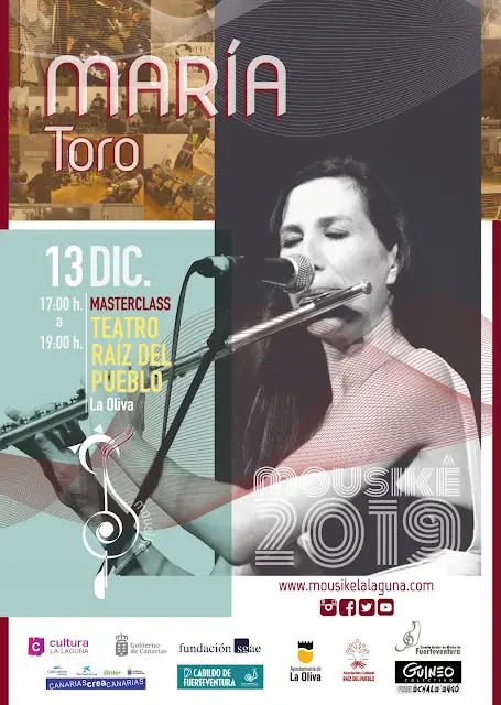 Fuerteventura.- La flautista María Toro impartirá una Masterclass este viernes, día 13 de diciembre, en el Teatro Raíz del Pueblo de La Oliva. Este evento, gratuito y abierto al público general, tendrá lugar de 17.00 a 19.00 horas, dentro de la programación cultural del Cabildo de Fuerteventura, en colaboración con el equipo de Mousikê la Laguna, que lleva a cabo esta y otras clases magistrales, siendo una iniciativa enfocada fundamentalmente al apoyo del estudio de la música moderna.