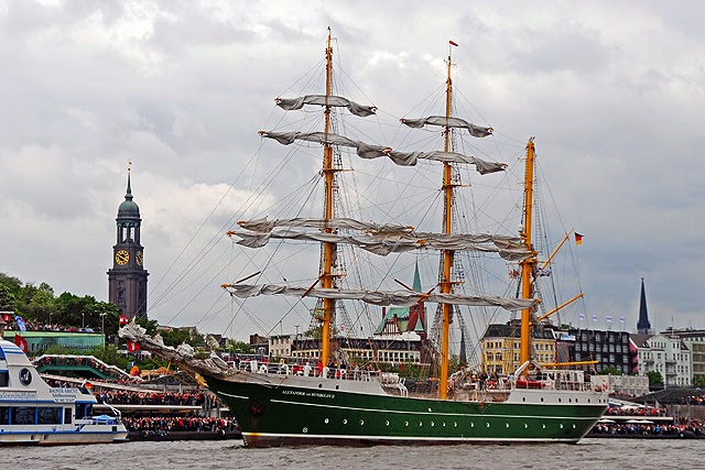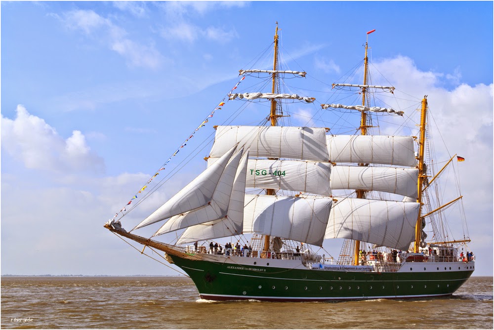 ALEXANDER VON HUMBOLDT II. Es un gran velero alemán construido en 2011 para sustituir al primer Alexander Von Humboldt de 1906. Es un bergantín de tres palos con casco de acero, con 65'5 metros de eslora, 10, 6 metros de manga, 5'1 metros de calado y que desplaza 749 toneladas. Está matriculado en Bremerhaven, Alemania, y cuenta con capacidad para 79 viajeros. Suele acoger a pasajeros de entre 14 y 75 años que quieran aprender a navegar a vela y sobre la navegación trasoceánica.