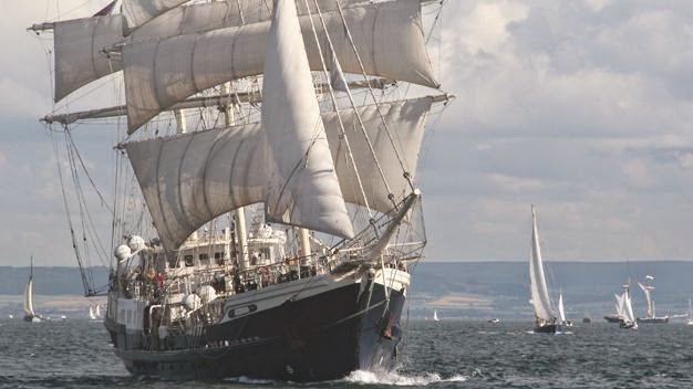 ROALD AMUNDSEN: Es un gran bergantín de bandera alemana, con una eslora de 50 metros, 7'2 metros de manga, 4'2 metros de calado y capacidad para 40 viajeros. Pertenece a la fundación altruista "Aprender a vivir en barcos a vela", dedicada a ofrecer experiencias de navegación a jóvenes interesados en relacionarse con el mar y la navegación. Su dotación está integrada solo por voluntarios. El Roald Amundsen fue construido en Rosslau en 1952, pero en 1992 su casco fue mejorado y adaptado para dotarlo de la actual configuración. Cuenta con 850 m2 de velas distribuidas en 18 velas sobre dos mástiles, con una altura máxima de mástil de 34 metros sobre la quilla.