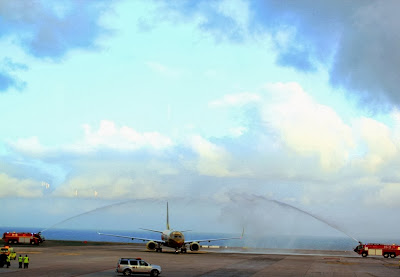 recibimiento consistió en un 'bautizo aéreo' del Boeing 737-800 a través del